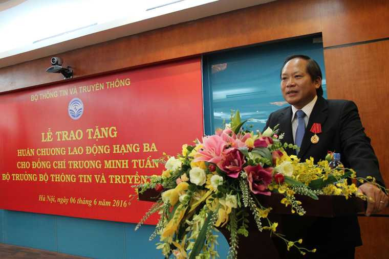 Chiều ngày 6/6/2016, tại Hà Nội, Bộ TT&TT tổ chức Lễ trao tặng Huân chương Lao động hạng Ba cho đồng chí Trương Minh Tuấn, Ủy viên Trung ương Đảng, Bí thư Ban Cán sự Đảng, Bộ trưởng Bộ TT&TT.