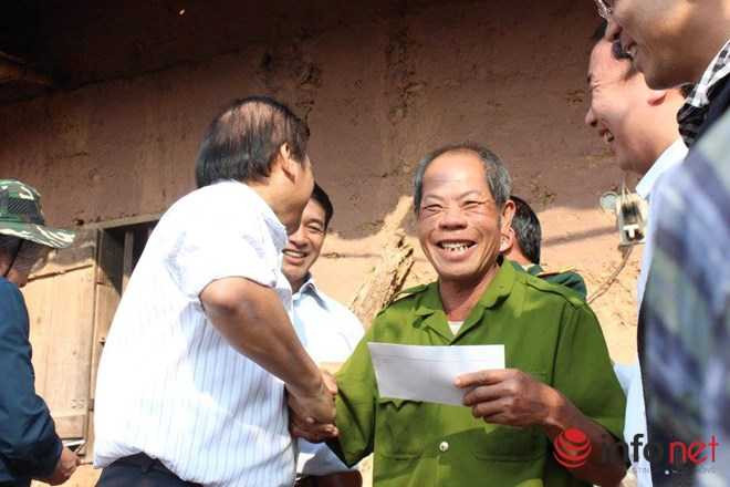 Bộ trưởng tặng quà động viên ông Nông Văn Lý, người dân sinh sống ở nơi đây từ ngày diễn ra xung đột biên giới ác liệt