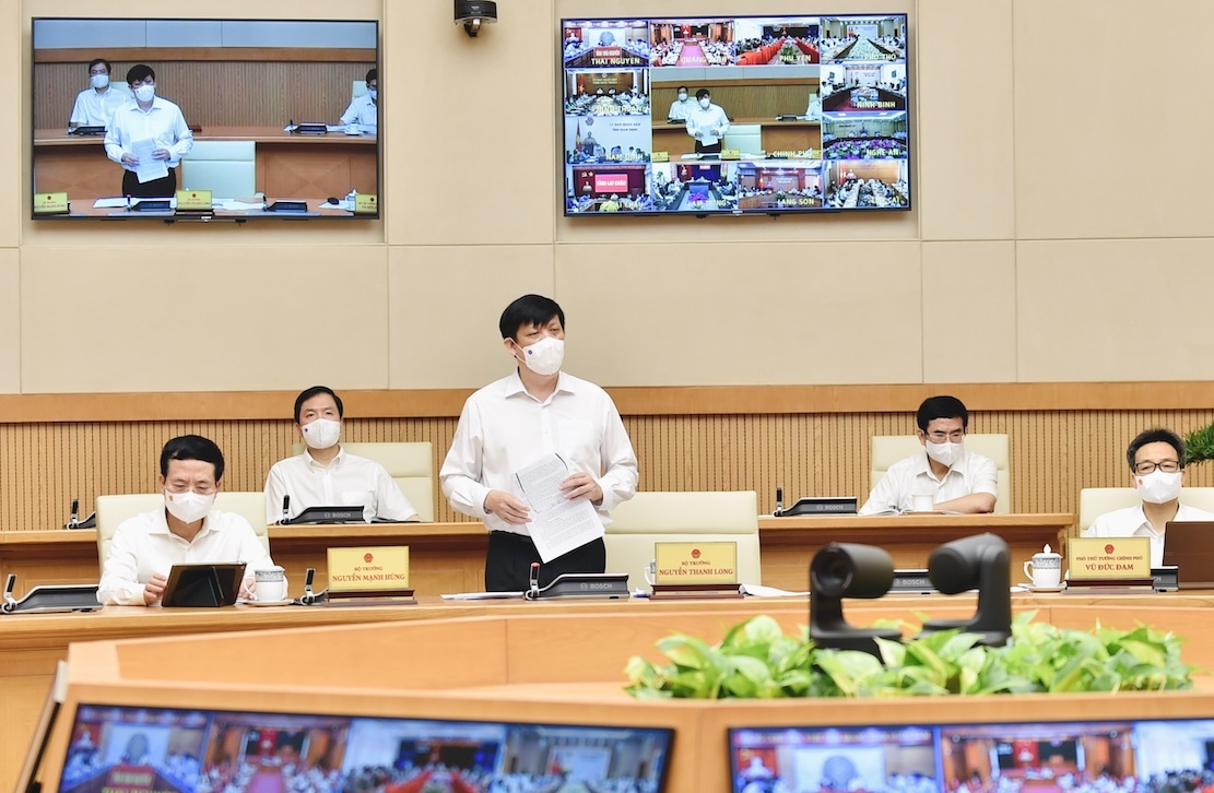 Bộ trưởng Bộ Y tế Nguyễn Thanh Long báo cáo tại Hội nghị. (Ảnh: VGP)