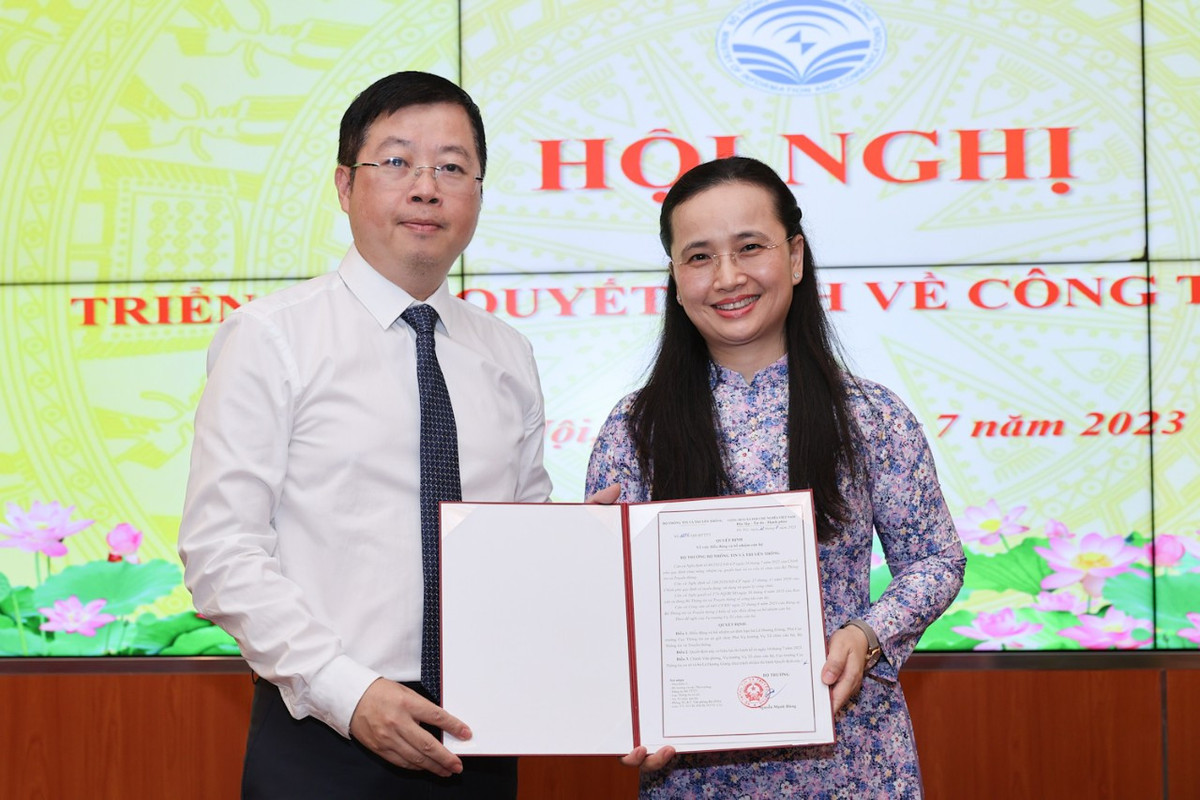 Thứ trưởng Bộ TT&TT trao quyết định tiếp nhận và bổ nhiệm cho bà Đặng Thị Phương Thảo. (Ảnh: Lê Anh Dũng)