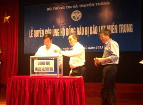 Chiều 4/10, Bộ TT&TT cùng các doanh nghiệp trực thuộc đã tổ chức buổi phát động, quyên góp nhằm ủng hộ đồng bào bị bão lụt miền Trung. Đến dự có Bộ trưởng Bộ TT&TT Nguyễn Bắc Son, các Thứ trưởng cùng đại diện các doanh nghiệp như