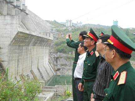 Đoàn công tác của Quân khu 5 do Thiếu tướng Nguyễn Quy Nhơn, Phó Tư lệnh Quân khu 5 đi thị sát tại đập thủy điện Sông Tranh 2.
