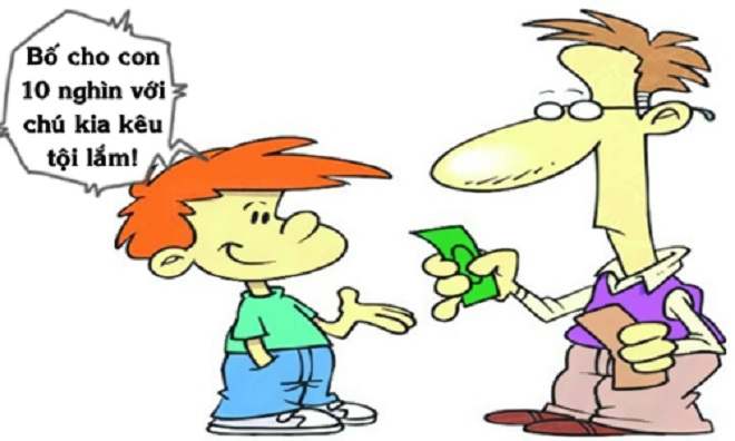 Đến lúc này ông bố chợt hiểu ra, nghĩ rằng con mình có lòng thương người nên vội móc trong túi ra cho Tèo 10 nghìn đồng. Đưa tiền xong ông hỏi:
