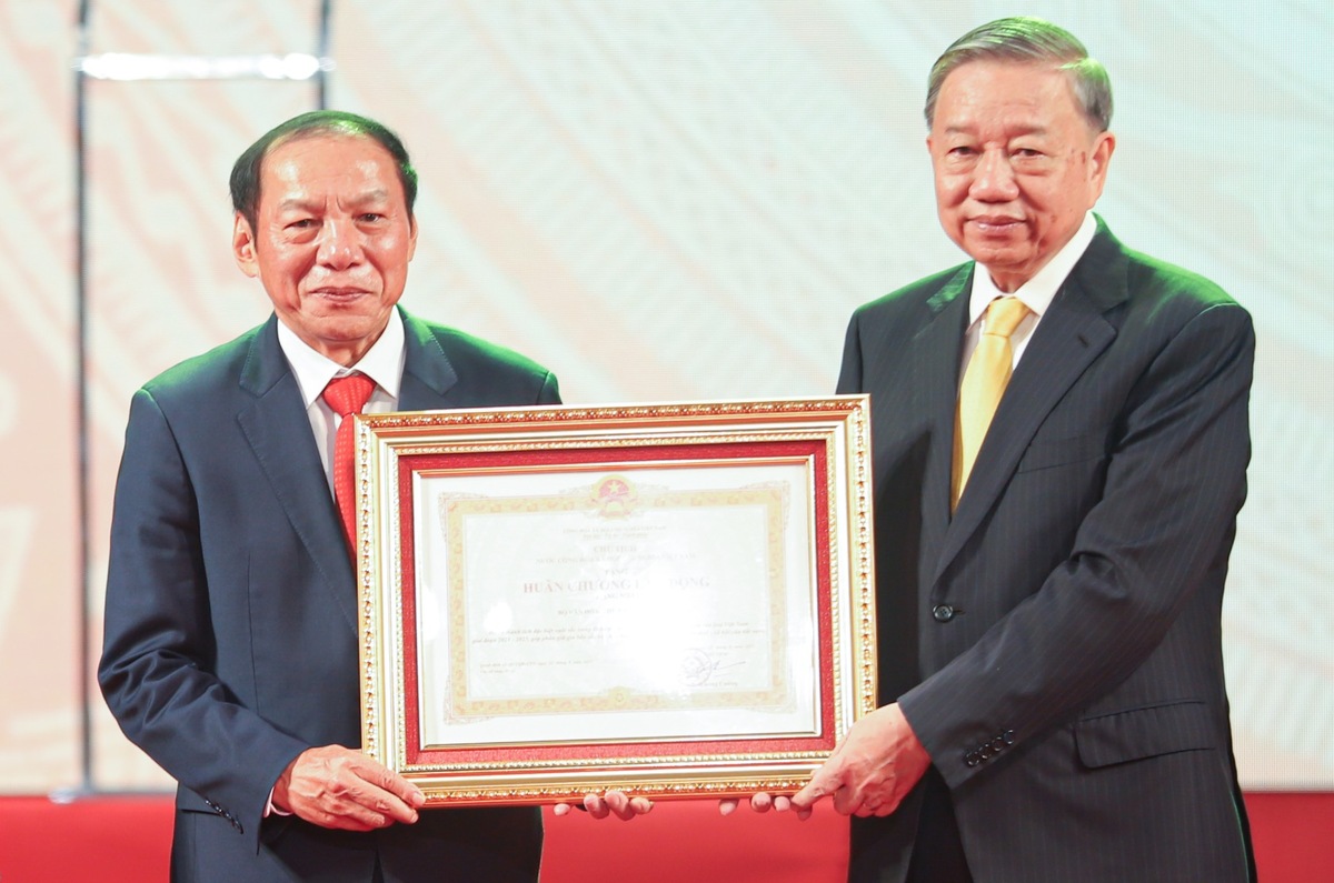 Tại Lễ kỷ niệm, Tổng Bí thư Tô Lâm thay mặt lãnh đạo Đảng và Nhà nước trao Huân chương Lao động hạng Nhất cho Bộ Văn hóa, Thể thao và Du lịch.
