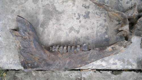 | Người sưu tập cầm trên tay xương hàm phải của con vật |