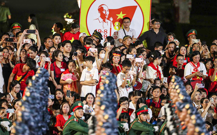 Người dân xem tổng hợp luyện lễ kỷ niệm 80 năm Cách mạng tháng Tám và Quốc khánh 2/9 tại Quảng trường Ba Đình. (Ảnh minh họa: Đắc Huy - Viên Minh)