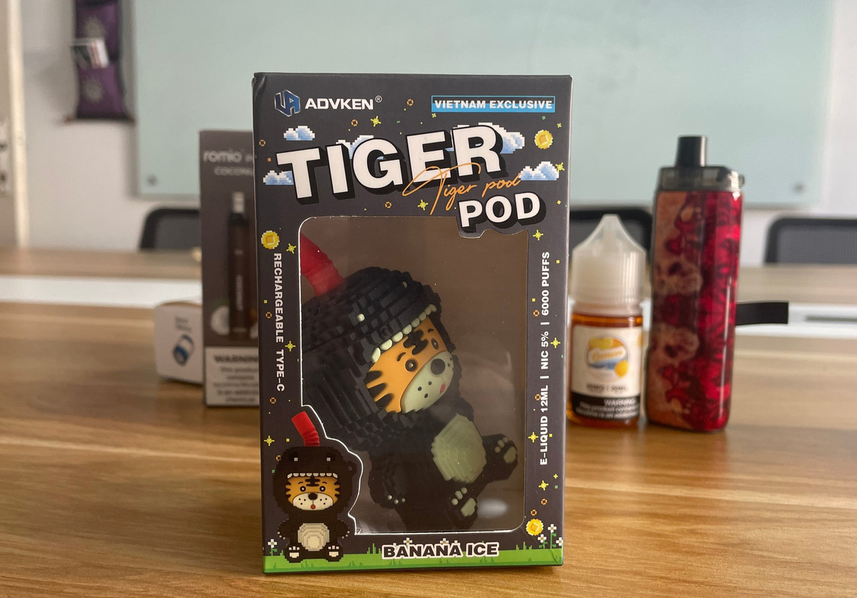 Trên thị trường còn rất nhiều sản phẩm thuốc lá điện tử được thiết kế nhỏ gọn, bắt mắt, đóng gói như sữa, kẹo, đồ chơi, USB, thỏi son. (Ảnh: Như Loan)