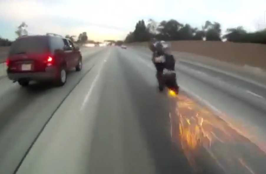 (VTC News) - Cú bốc đầu xe thất bại khiến chiếc môtô bị mài đuôi xuống đường tóe lửa, còn người điều khiển phương tiện thì bị lăn nhiều vòng dưới mặt đường.