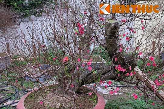 | Chủ nhân cây đào chia sẻ, để có những gốc đào thế đắt tiền, người làm vườn phải chịu khó tìm mua những gốc đào rừng thế đẹp, lâu năm. Nhiều khi phải lên những vùng rừng núi Lạng Sơn, Mộc Châu để ngắm và tìm mua gốc ưng ý về ghép với đào nhà |