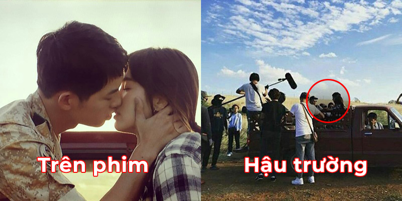 Thực tế không hề đẹp như trên phim. Trong khi cặp đôi chính tình cảm hôn nhau, thì xung quanh có hàng chục nhân viên hậu trường… đứng xem và hỗ trợ để có được những thước phim đẹp nhất.