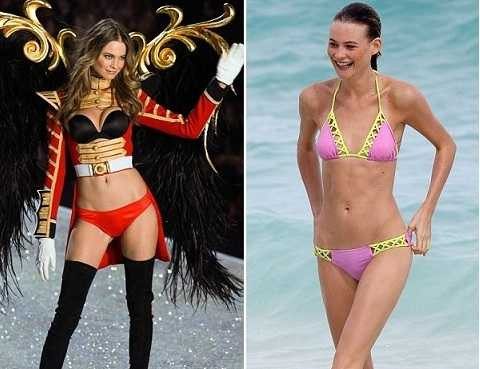 Khi so sánh 2 hình ảnh này với nhau, vòng một của Behati Brinsloo rõ ràng có sự khác biệt lớn - không bốc lửa như ở Victoria's Secret Fashion Show mới đây.