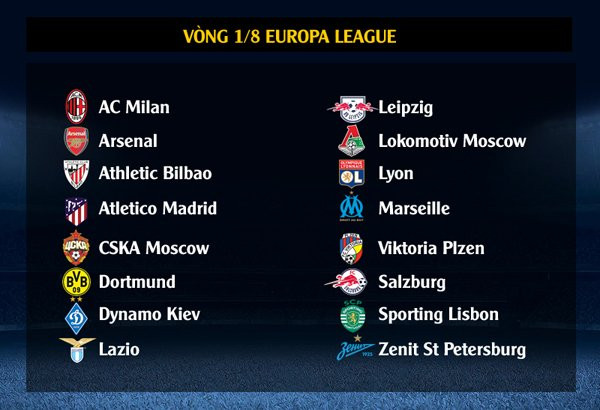 Các cặp đấu vòng 1/8 Europa League