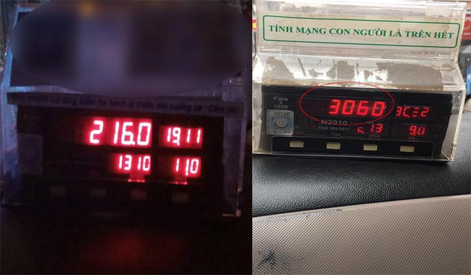 "Việc đồng hồ tính giá cước bị mất đi dấu chấm trước số 0 (mặc định) đã biến số tiền đáng nhẽ từ 306.0 (tức 3 trăm lẻ 6 ngàn đồng- PV) thành 3060 (3 triệu 0 trăm 60 ngàn đồng)", anh Đ. nói.