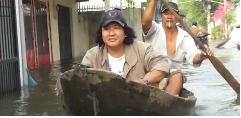 Một số hình ảnh người dân Sài Gòn đánh cá giữa phố:Người Sài Gòn chèo ghe, bắt cá trong triều cường lịch sử. Nguồn: VNE