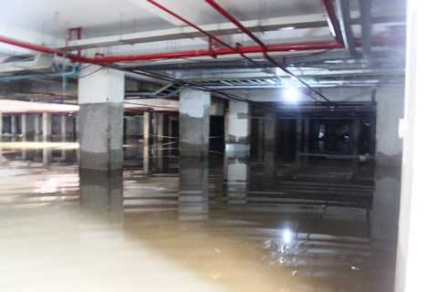 Nước ngập lênh láng trong tầng hầm chung cư Gia Khang