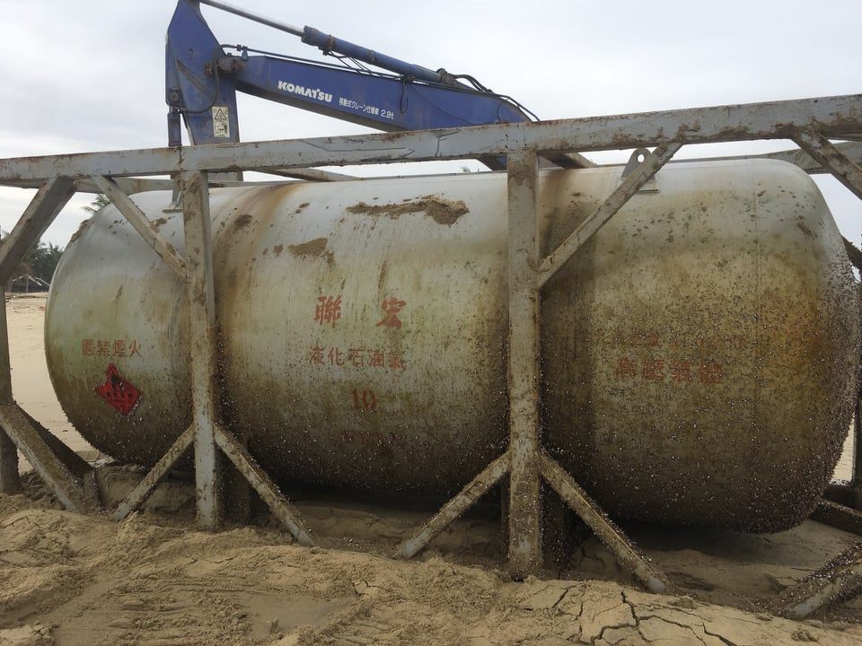 Bồn hóa chất dạt vào bờ biển Quảng Nam. (Ảnh: BP)