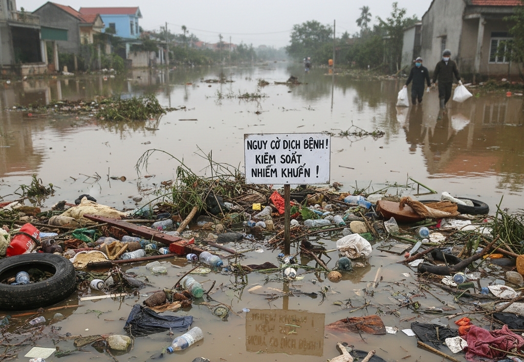 Sau bão lũ, môi trường sống thường bị ô nhiễm nghiêm trọng. Nước ngập kéo theo rác thải, xác động vật, bùn đất, hệ thống thoát nước bị tắc nghẽn, tạo điều kiện lý tưởng cho vi khuẩn, virus phát triển.