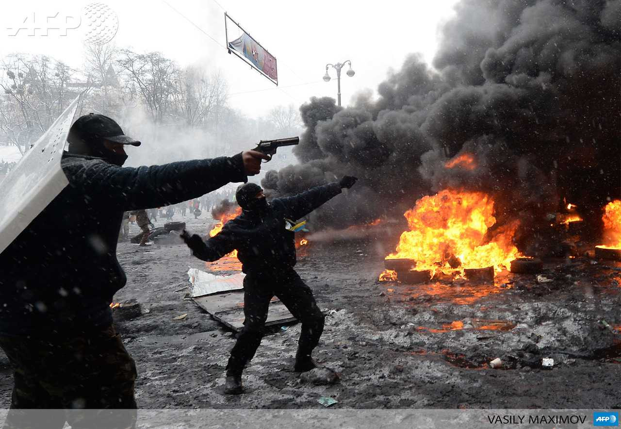 Phần tử cực đoan trong đám đông biểu tình ở Kiev, Ukraine
