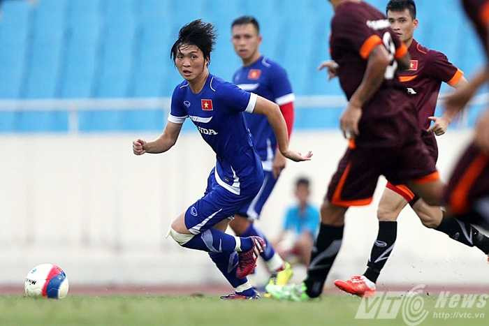 | Công Phượng trong trận đấu với đàn anh ở tuyển Việt Nam (Ảnh: Quang Minh) |