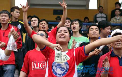 Ở Hà Nội, một đội bóng mạnh như HN T&T cũng phải tìm cách mua CĐV, tức là trả tiền cho các học sinh, các bà nội trợ đến sân cổ vũ. CĐV cũng không đông và cũng không bền.