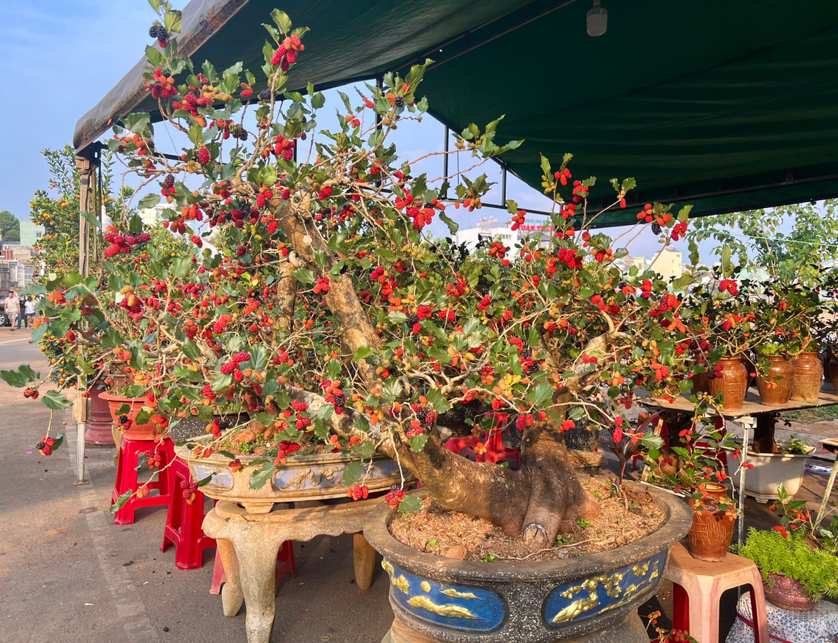 Còn anh Tuấn Long (29 tuổi) cho biết anh đã mua 2 cây dâu tằm bonsai với giá 12 triệu đồng mỗi cây. Theo anh Long, màu đỏ quả của dâu tằm làm cho anh cảm thấy được sự may mắn, sung túc nên anh đã mua để đặt ở trước phòng khách và ban công.