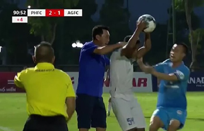 Video: HLV Hứa Hiền Vinh bóp cổ cầu thủ An Giang