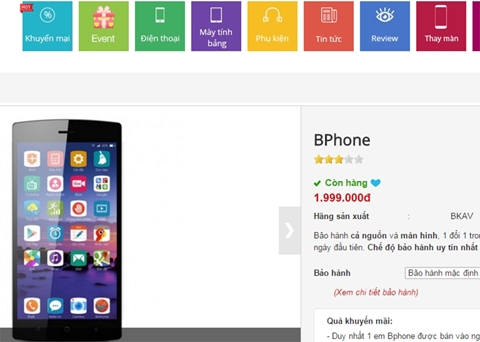 | Được biết, đây là phiên bản điện thoại Bphone 16 GB màu đen bán kèm phụ kiện chính hãng đầy đủ gồm sạc, dây cáp và tai nghe. Sản phẩm có ngoại hình mới 95% và được cửa hàng tại đường Trường Chinh, Hà Nội niêm yết với giá 1.999.000 đồng. Chỉ có một chiếc Bphone được bán với giá này, và chỉ bán trong một ngày duy nhất là ngày 10/3 âm lịch (tức ngày 16/4 dương lịch). ẢNh: ICT News. |