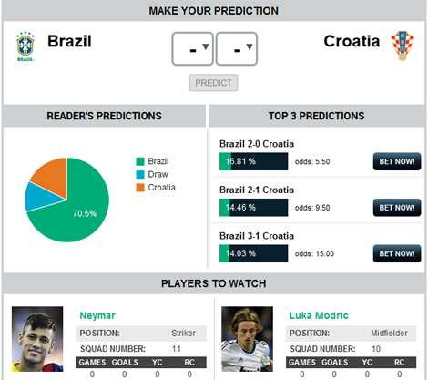 | Tỷ lệ dự đoán trên Goal.com, tính đến 8h30 ngày 12/6 |