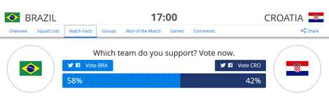 | Tỷ lệ vote trên fifa.com tính đến 8h30 ngày 12/6 |