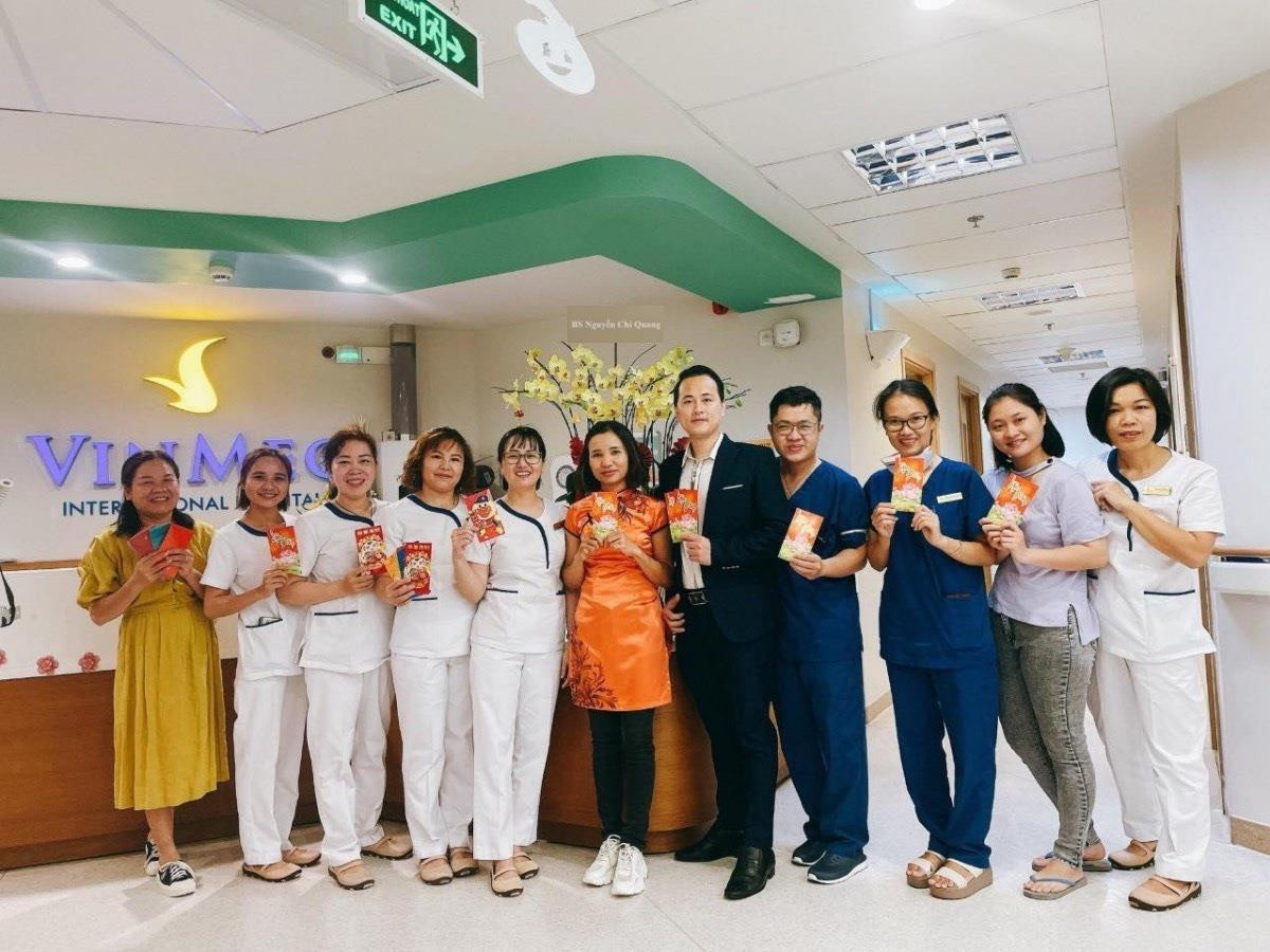 Bác sĩ Nguyễn Chí Quang chụp ảnh cùng các đồng nghiệp vào dịp Tết Nguyên đán.