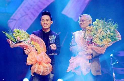| Tùng Dương và nhạc sỹ Doãn Nho nhận giải Bài hát của năm. |