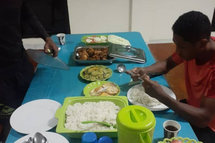 Như tất cả thấy trong bức ảnh mà Tatoli đăng tải, bữa ăn cho hai VĐV chủ yếu là cơm trắng, vài quả trứng ốp-la, rau xào, một món thịt và dưa chuột, cà chua thái lát. Bức hình còn lại là đôi giày mòn vẹt của một VĐV điền kinh, người sẽ tới Campuchia trong nay mai với kỳ vọng mang vinh quang về Timor-Leste giống như Felisberto De Deus đã từng.