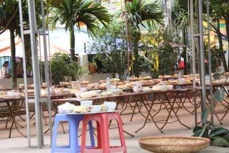 Những ngày lễ lớn, hàng trăm mâm cỗ tinh tươm đã được bày sẵn ở đây chờ người ăn. Những người lần đầu tham dự đều cho rằng đây là cảnh tượng chưa từng được chứng kiến.