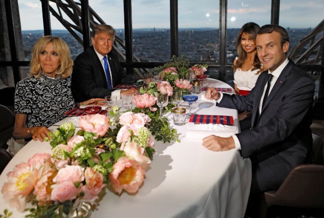 Tối 13/7, Tổng thống Pháp Emmanuel Macron chiêu đãi người đồng cấp Donald Trump bữa tối tại một trong những nhà hàng nổi tiếng nhất Paris tọa lạc trên tháp Eiffel.