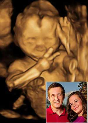 Chị Abigail Appleton, người Anh, mang thai 31 tuần, đi siêu âm 3D và các bác sĩ đã chụp được bức hình ngộ nghĩnh trên.