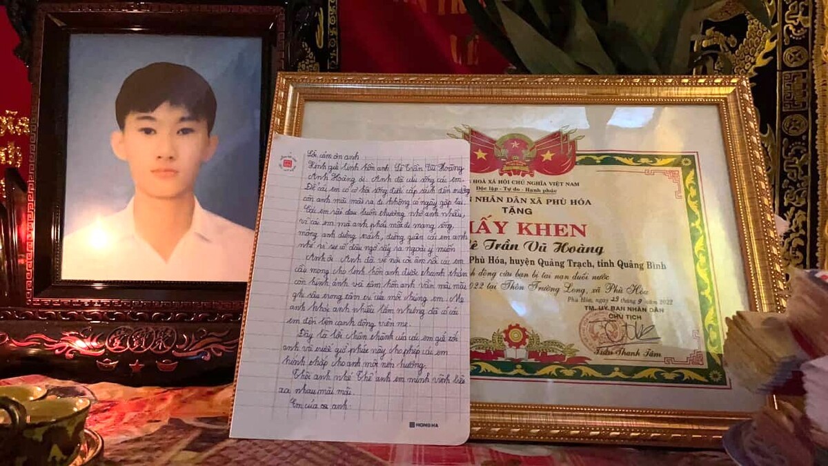 Trong thư có đoạn viết: “Anh Hoàng ơi, anh đã cứu sống các em để các em có cơ hội được sống, cắp sách đến trường còn anh mãi mãi ra đi không có ngày gặp lại.