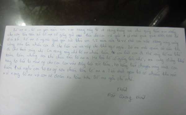 Lá thư chưa đầy nửa trang giấy A4, Khánh khoe, do là út trong buồng nên được mọi người quý mến. Sau một thời gian, bị can này đã cứng rắn và béo lên nhiều.