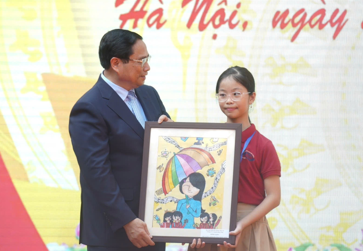 Cũng tại lễ khai giảng, thay mặt thầy và trò trường Phổ thông Cơ sở Nguyễn Đình Chiểu, học sinh Hoàng Thùy Chi (lớp 6A3) tặng Thủ tướng Phạm Minh Chính bức tranh vẽ. Tác phẩm của Chi từng đoạt giải xuất sắc cuộc thi "Viết vẽ về thầy cô trong trái tim em" do nhà trường tổ chức năm 2024.