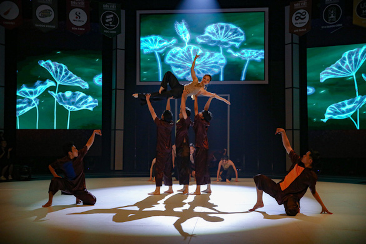 Nhóm M.U.G trình diễn với bài nhảy ấn tượng thể hiện tác phẩm được giao là 'Bánh trôi nước' trong 'Nhóm nhảy siêu Việt'. (Ảnh: VietCom).