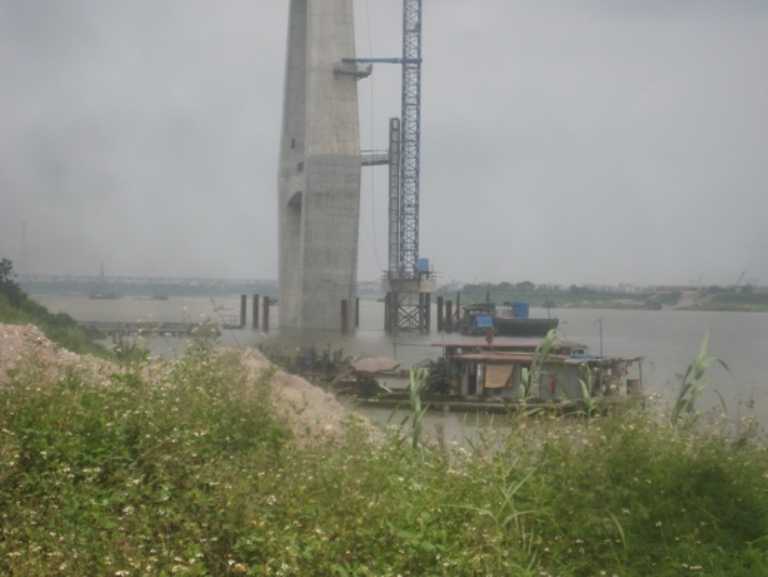 Song ngoài khu vực điều tiết thi công cầu, tại bờ nam sông Hồng cách trụ cầu Nhật tân về phía hạ lưu khoảng 600 -700m có một bến vật liệu xây dựng, được phép hoạt động đến tháng 8/2013. Trong thời gian vừa qua có một số phương tiện vận chuyển cát từ nơi khác đến tập kết tại đây vào ban đêm, đến sáng bơm lên bãi vật liệu xây dựng để bán cho các hộ dân có nhu cầu.