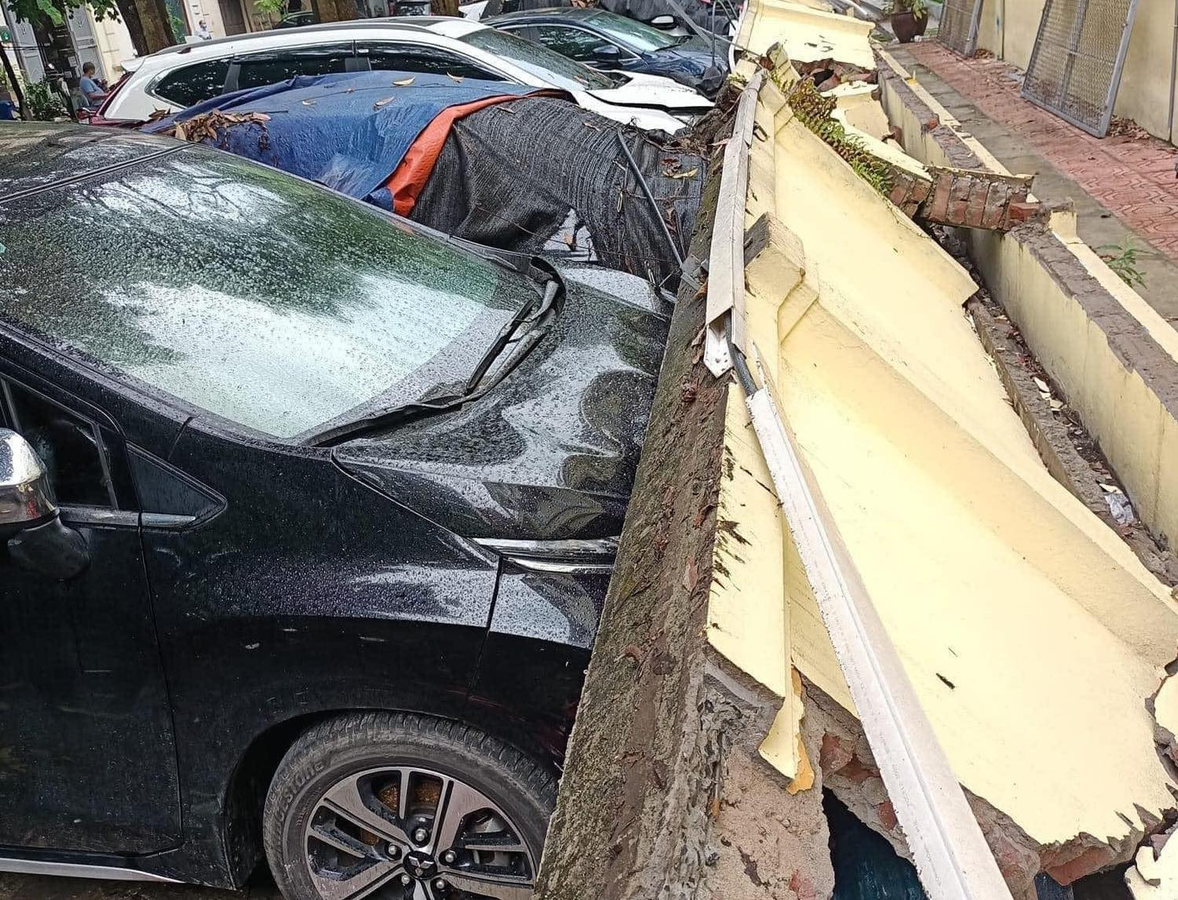 Đại diện Công an phường Mai Dịch xác nhận vụ việc và cho biết nguyên nhân bức tường bị đổ do ảnh hưởng của mưa và gió mạnh từ hoàn lưu áp thấp nhiệt đới.