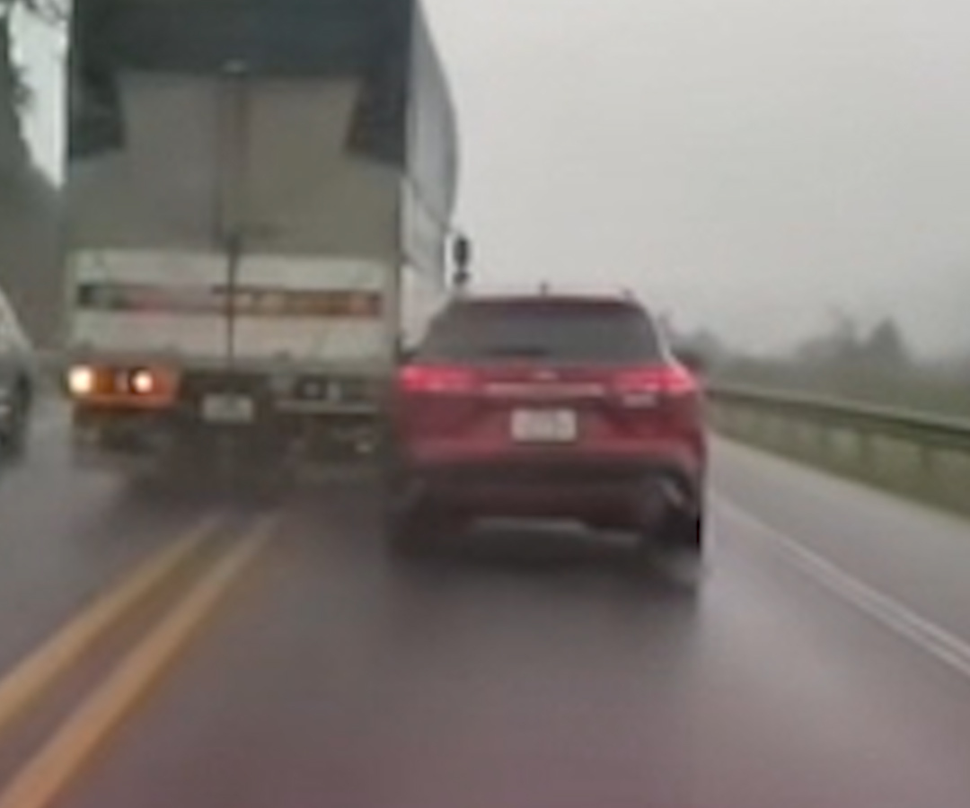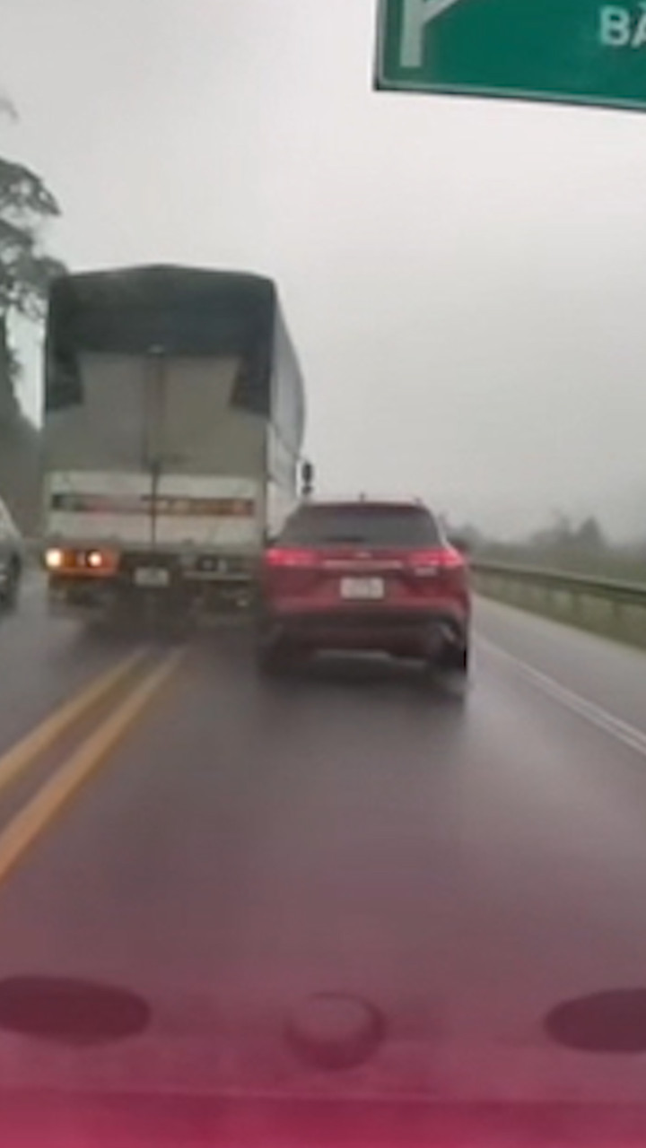 Bức xúc xe tải vượt ẩu ép ô tô con chao đảo trên đường