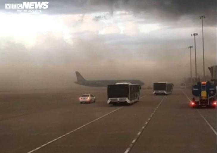 Đoạn video thấy rõ bụi mù che khuất cả tàu bay, dù lúc đó thời tiết vẫn đang rất thuận lợi, các phương tiện và nhân viên mặt đất vẫn đang tích cực hoạt động chuẩn bị cho chuyến bay.