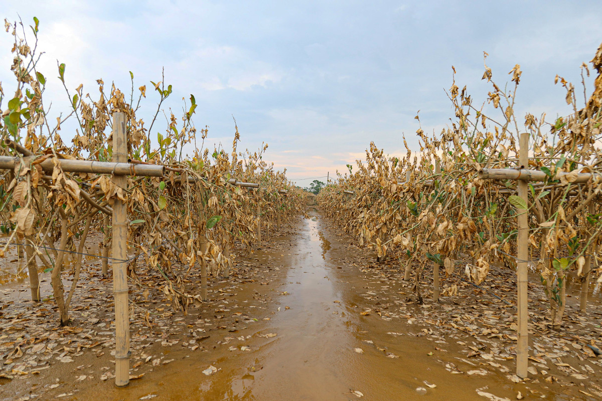 Những khu vườn phật thủ xanh tươi, đợi đến ngày hái quả nhưng nay chỉ đã chết khô, ngập trong bùn lầy.