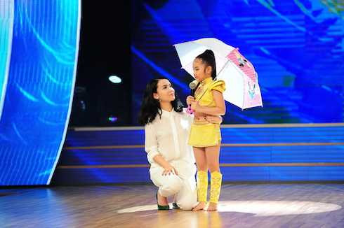 | Lệ Huyền dũng cảm với màn múa đương đại dù sở trường của cô bé là dance sport. Cô bé về đội của Phan Hiển và Đoan Trang. |