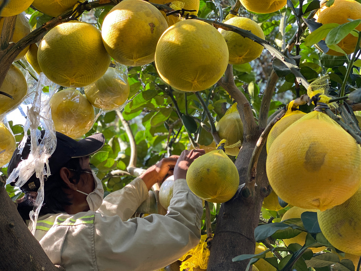 Những cây bưởi Diễn nặng trĩu quả, vàng ươm trên đường Mai Chí Thọ.