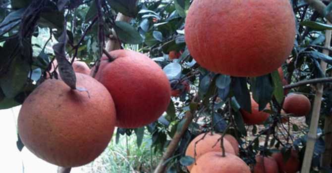 | Bưởi đỏ Luận Văn loại một có giá 200.000 đồng một quả bán tại vườn nhưng vẫn không đủ để cung cấp ra thị trường. |