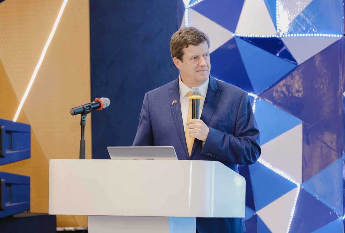Giáo sư, Tiến sĩ Rick Bennett - Phó hiệu trưởng trường BUV phát biểu tại sự kiện công bố chương trình đào tạo mới và quỹ học bổng 2024 (Ảnh: BUV).