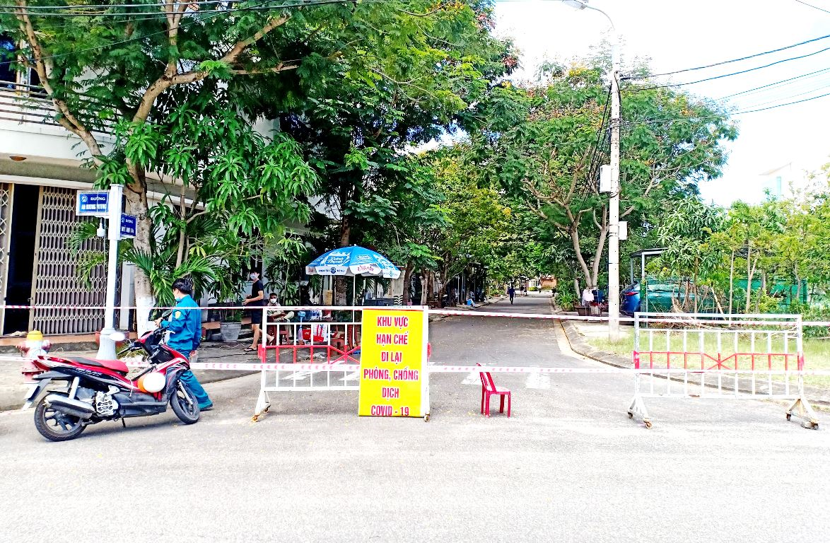 Lực lượng chức năng phong tỏa khu vực có 6 người trong 1 gia đình ở phường Mỹ An, Ngũ Hành Sơn mắc COVID-19.