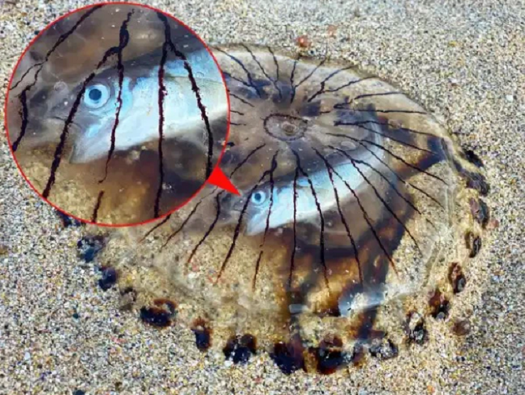 Do thân hình con sứa trong suốt, dễ dàng nhận ra sinh vật bị mắc kẹt bên trong nó.